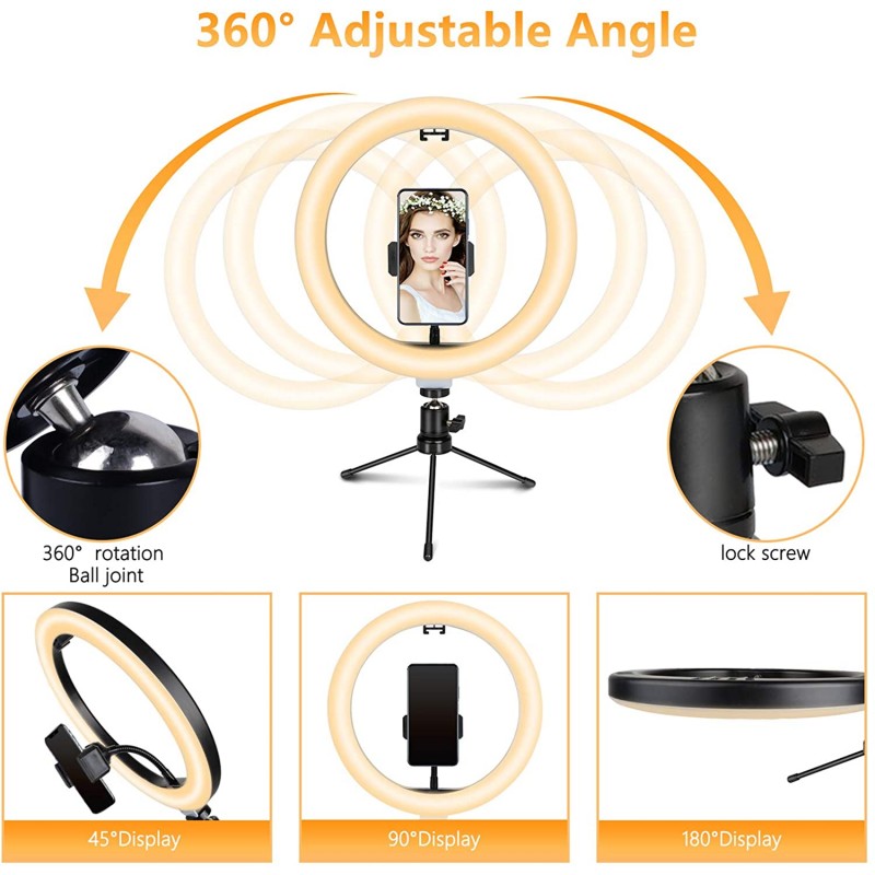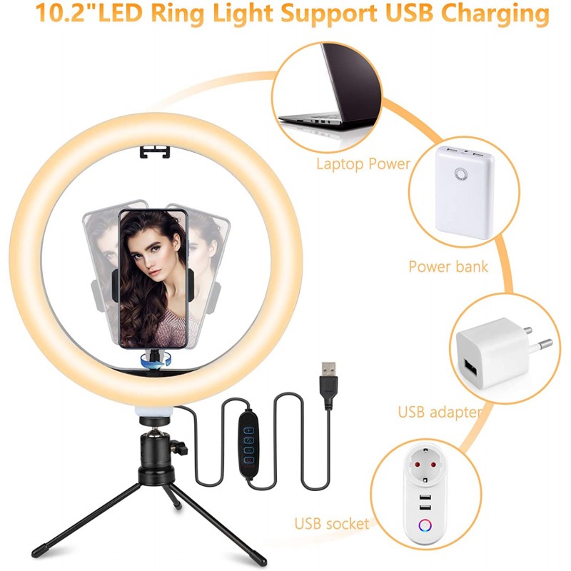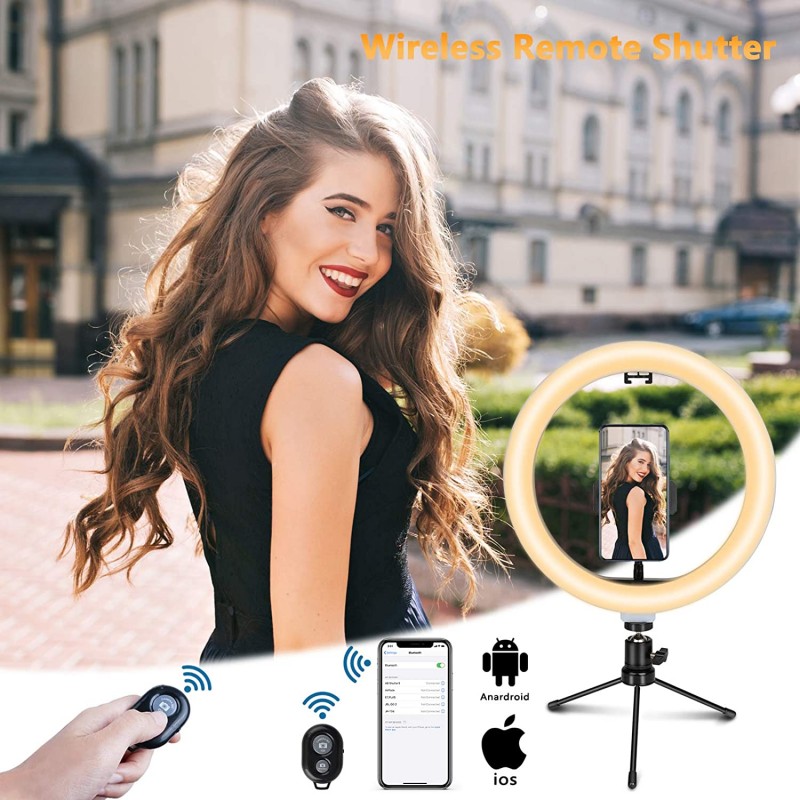Tvlive Ring Light, 10.2 Inches Ring Light with Tripod, Selfie Light with 3500 K - 6500 K Dimmable Bluetooth Receiver, 3 Light Colours and 10 Brightness Levels for Youtuber Live Streaming TikTok Make-Up