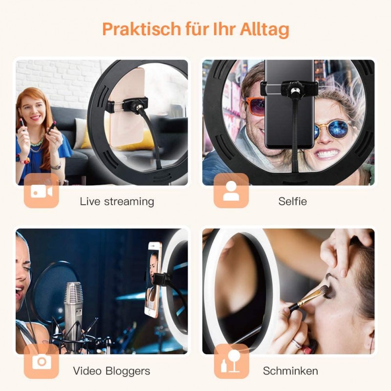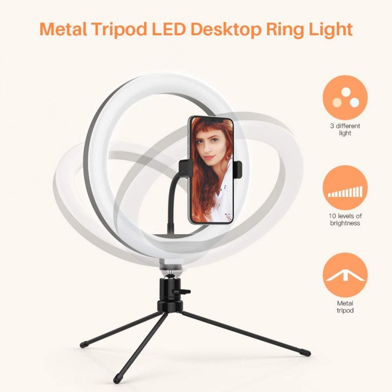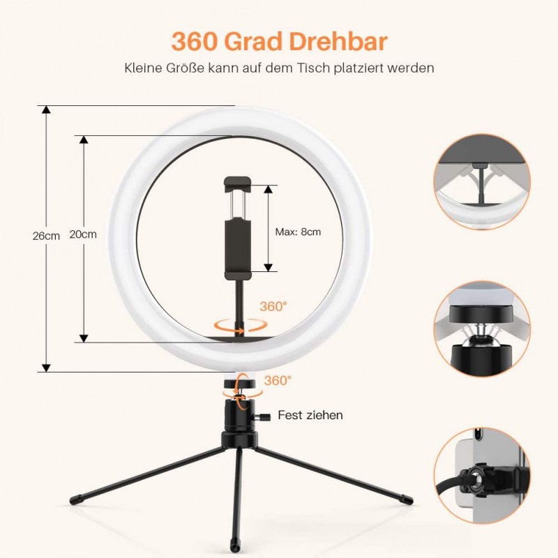 Yoozon selfie ring light 10.2 inches with tripod and remote control, table ring light with 3 colours and 10 brightness levels, live light for beautiful photos or video shooting, live streaming, portrait, make-up etc.